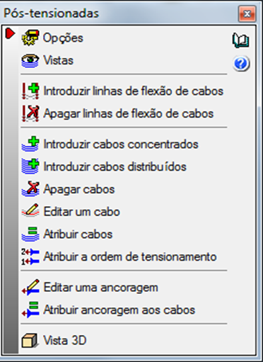Feito esse procedimento, poderemos adicionar as características das cordoalhas acessando o menu superior Pós-tensionadas.