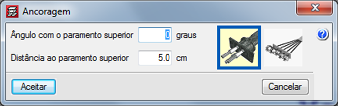 E teremos como editar o seu ângulo e suas distâncias, como o tipo de ancoragem: