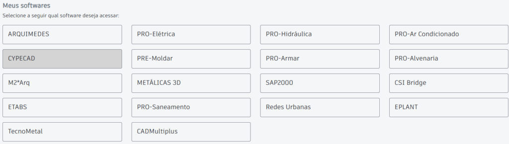 Selecione o Software que deseja consultar no Portal do Usuário.