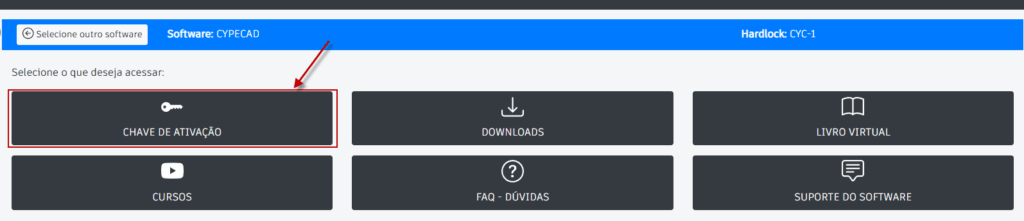 Depois de selecionar qual software deseja, siga para chave de ativação: