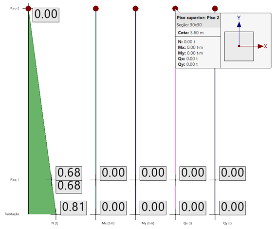 Logo podemos observar que o esforço vertical foi corretamente aplicado no pilar.