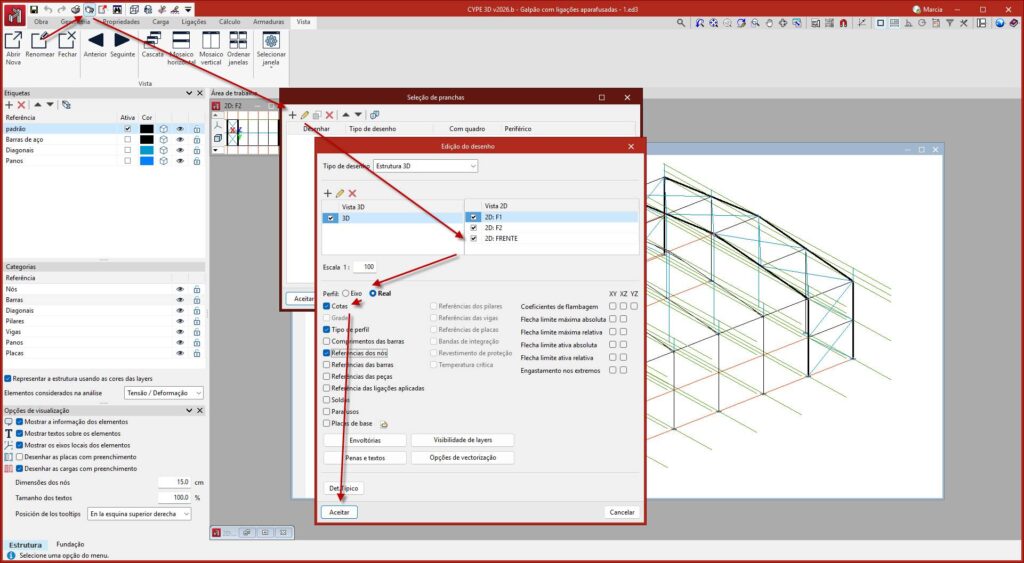 Como gerar vistas e pranchas dwg para CAD no CYPE 3D versão 2026?